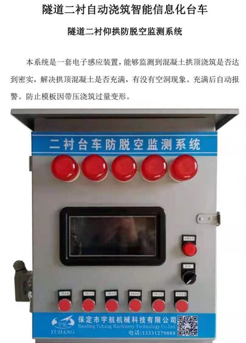 智能信息化臺車,它加裝了攝像、防脫空監(jiān)測系統(tǒng)、通過插入式高頻振搗系統(tǒng)對振搗時間、頻次、插入深度等參數(shù)自動控制、激光掃描系統(tǒng)、流量泵計量、入模溫度、壓力傳感器實時監(jiān)測系統(tǒng),臺車自動行走系統(tǒng)、激光定位系統(tǒng)、及臺車堵頭板專利產(chǎn)品的應(yīng)用,這臺智能信息化自動澆筑臺車,加裝了“宇航e管家”,實現(xiàn)了自動澆筑智能化信息化,實時監(jiān)控,實施儲存,克服了隧道二襯脫空、蜂窩麻面等質(zhì)量問題,減少人工 提高了工效 節(jié)約了成本。